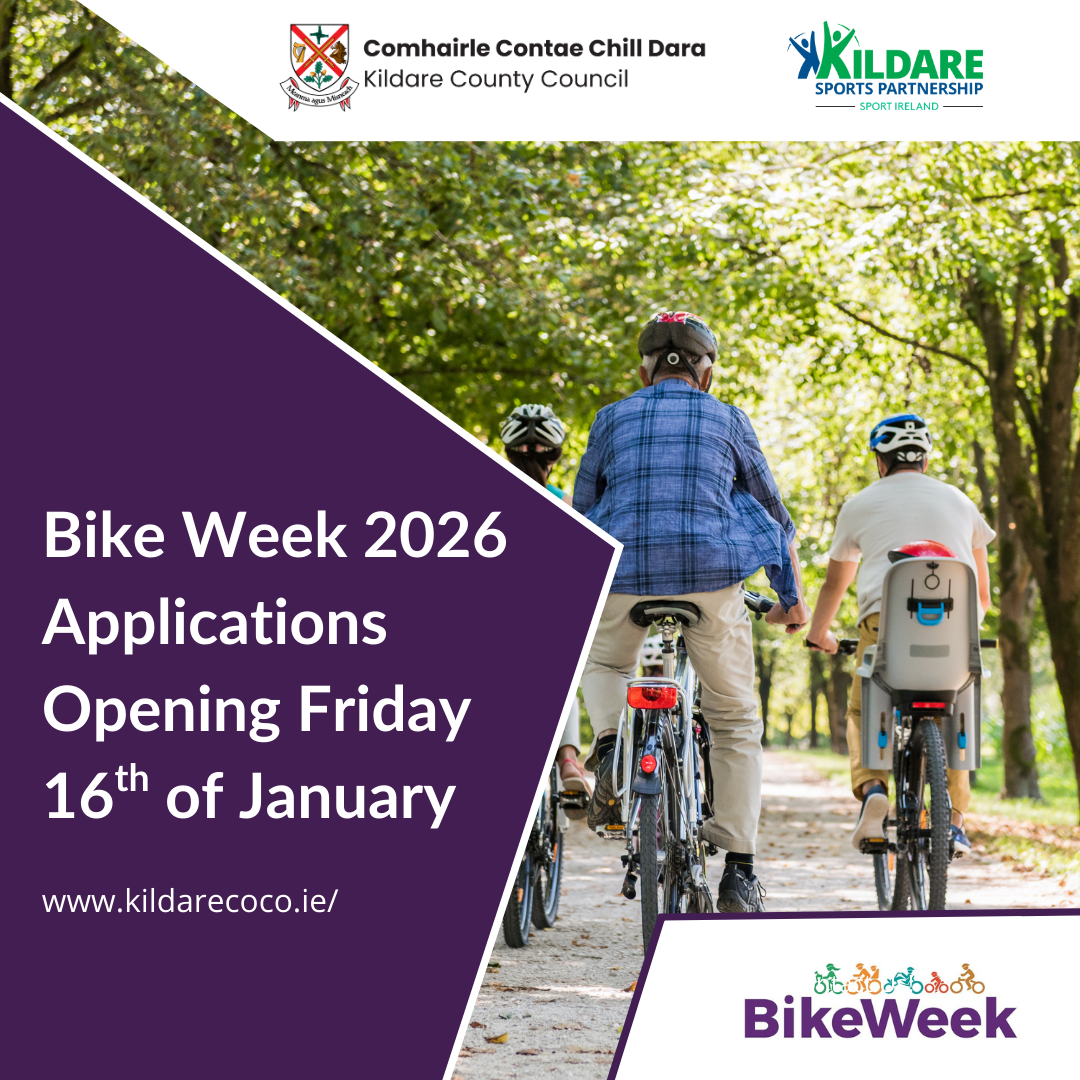 Kildare County Council and Kildare Sports Partnership, with support from the National Transport Authority, are inviting community groups to host their own Bike Week 2026 events, running May 9th–17th. Activities must be open and inclusive for both members and the wider community.