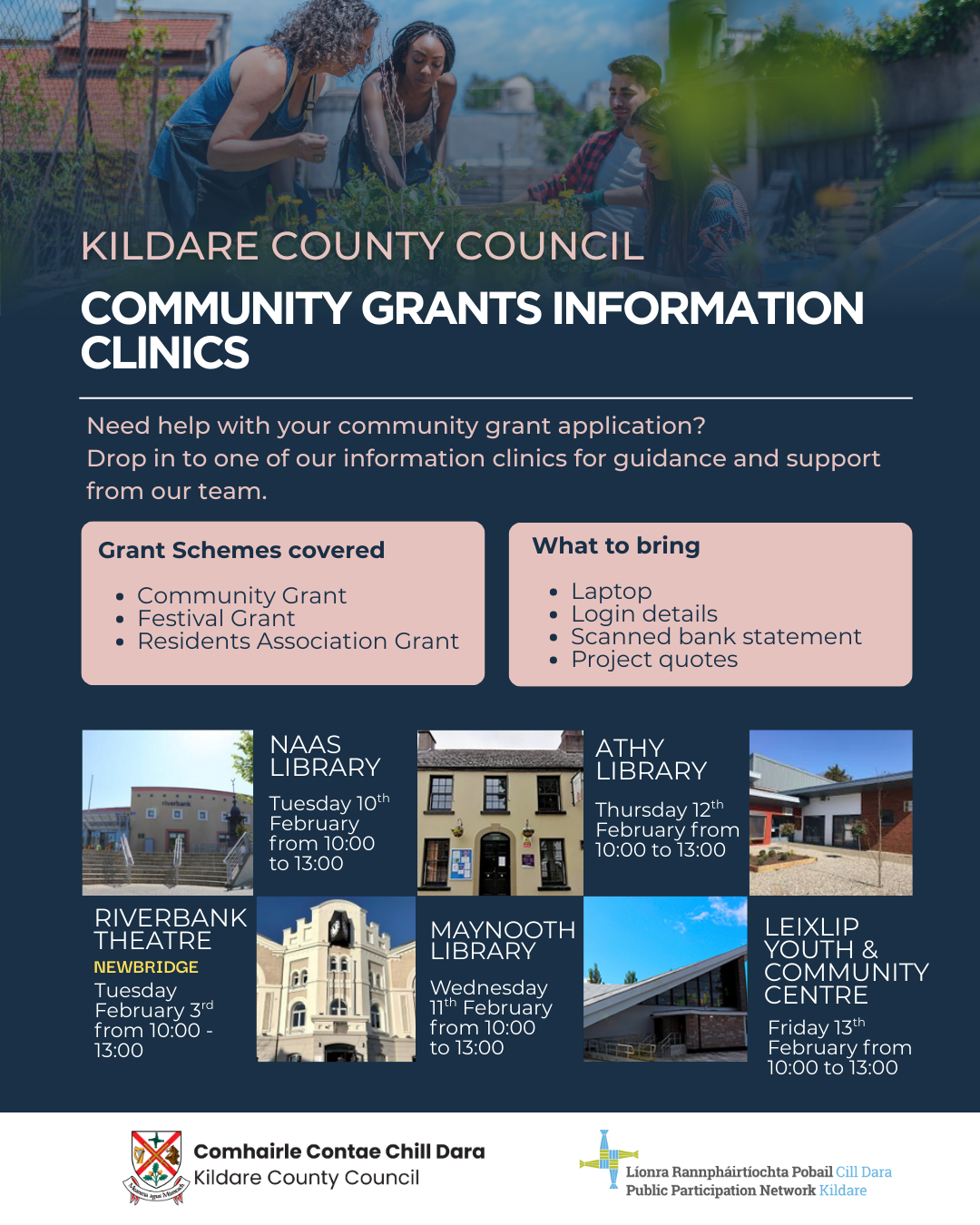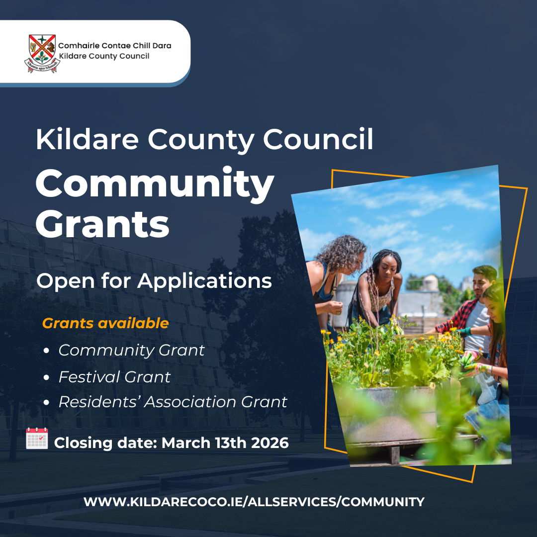 The Kildare County Council Community Grants Schemes are now open for applications. Grants available include: