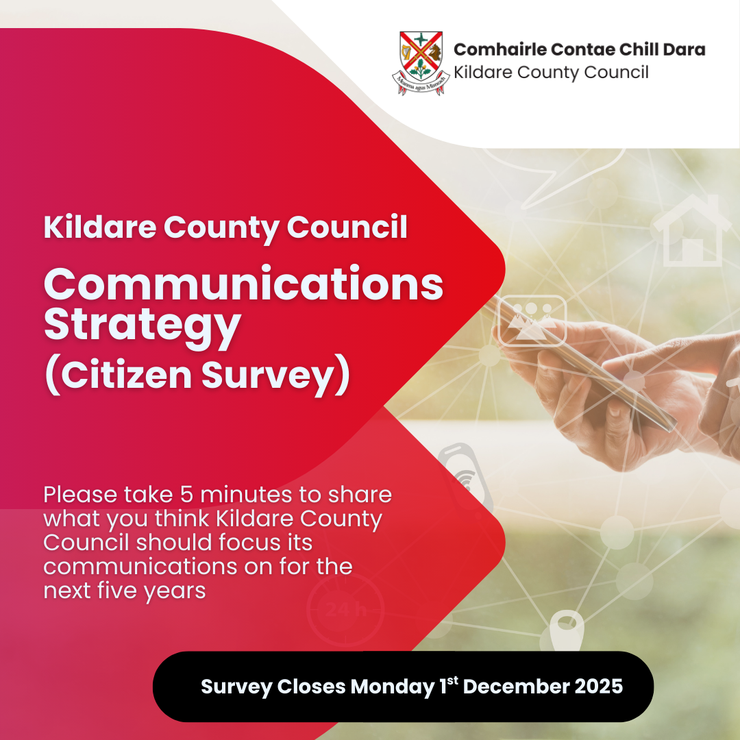 Kildare County Council are currently in the process of developing their new communications strategy and as part of this they have prepared a surveys for community groups and members of the public. Please take 5 minutes to share what you think Kildare County Council should focus it’s communications on for the next 5 years.